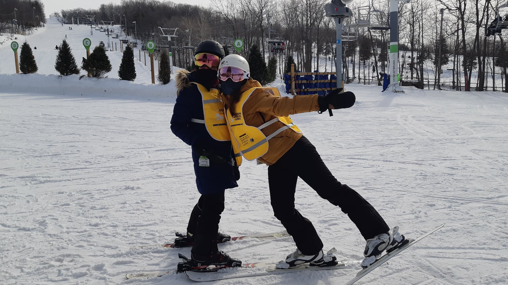 Une accompagnatrice et une participante font une pose devant la caméra.