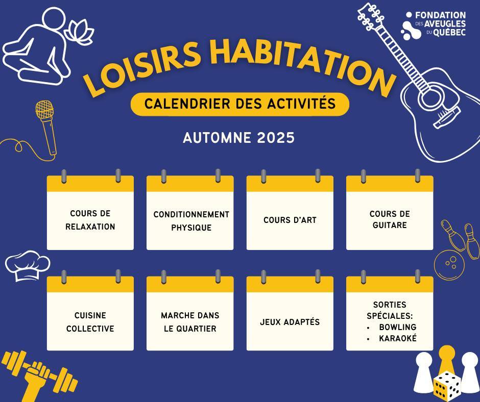 ℹ️ Veuillez noter que ces activités sont réservées exclusivement aux locataires résidant dans les logements de la Fondation des Aveugles du Québec. 🏠